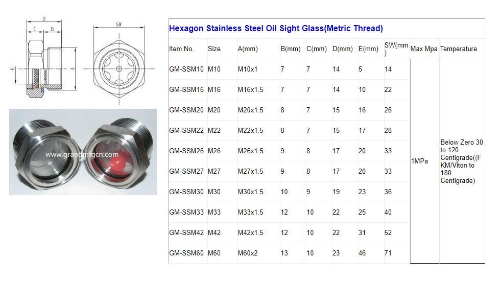 Safety Sight Glass Assembly - Threaded Checks coolant level without removing pressure cap (fits radiators and surge tanks) Stainless steel liquid level sight glass,Brass liquid level sight glass,aluminum liquid glass oil sight gauge supplied.