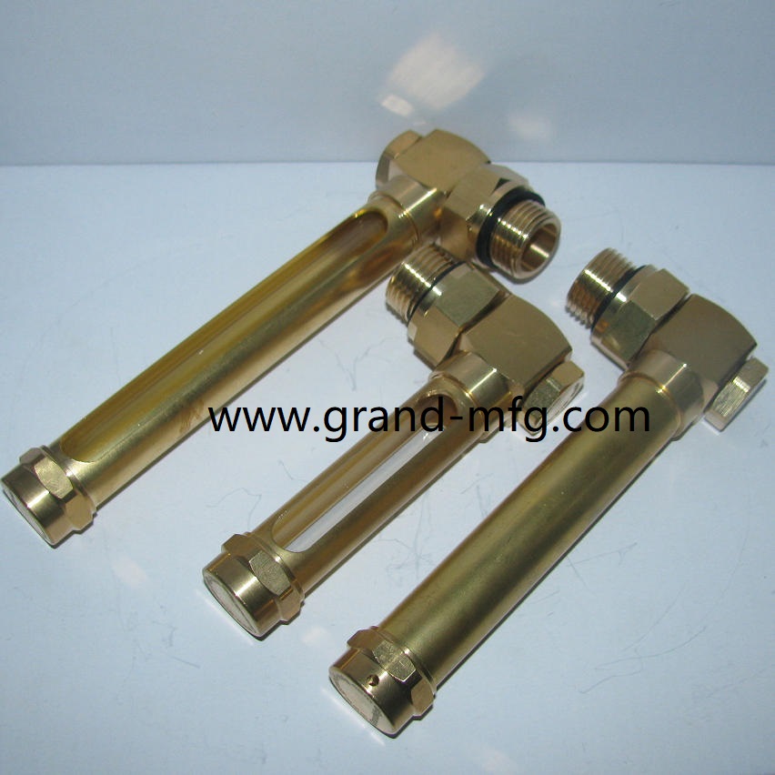 Brass Tube Oil level Indicator/Oil level Gauge with glass tube. Plastic level indicator/gauge Housing: Brass Tube . Tube: Real glass tube. O-Ring and flat gaskets: NBR Rubber. Usage: Pump, Thin-wall container, Radiator, Hydraulic reservoir, receivers, Gearboxes, Speed Reducer, Compressor and Power Transmission.