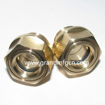 Brass oil level sight glass plugs for air compressor Brass Oil level sight glass O-Ring: Viton,FKM,FPM,NBR, Aramid gasket and Copper seal Glass Thickness: 2mm to 5 mm Reflectors: Stainless Steel 304 Reflector Glass Type: Natural Glass,Tempered Glass and Borosilicate Glass Resist Tempreature Range:-30'C to 120'C Pressure Range: 5-10 Bar(0.5MPa to 1 MPa). Thread type:NPT,NPTF,UNC,UNF,Metric and BSP(G thread)
